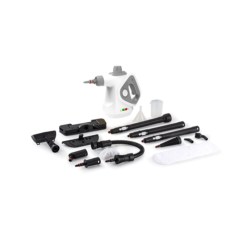 READ MORE O limpador a vapor portátil multifuncional TM-377 900-1050W com esfregão é uma solução de limpeza completa projetada para realizar uma ampla gama de tarefas de limpeza doméstica. Este vaporizador versátil combina a limpeza a vapor poderosa com a conveniência de um esfregão, tornando-o perfeito para limpar pisos, janelas, superfícies de cozinha e muito mais. O TM-377 oferece desempenho excepcional para higienizar e limpar sem a necessidade de produtos químicos agressivos. Ele aquece em apenas 1-3 minutos e fornece até 10 minutos de vapor contínuo, ideal para limpeza profunda e remoção de manchas difíceis. O conjunto de acessórios de 16 peças incluído, que apresenta ferramentas essenciais como bicos de pulverização longos e curvos, escova redonda, mangueira de extensão e uma toalha, é complementado por 7 acessórios de esfregão: 3 tubos de esfregão, 2 conectores de transferência de esfregão, uma toalha de manga longa e uma parte inferior do esfregão, tornando-o especialmente eficaz para a limpeza de pisos.